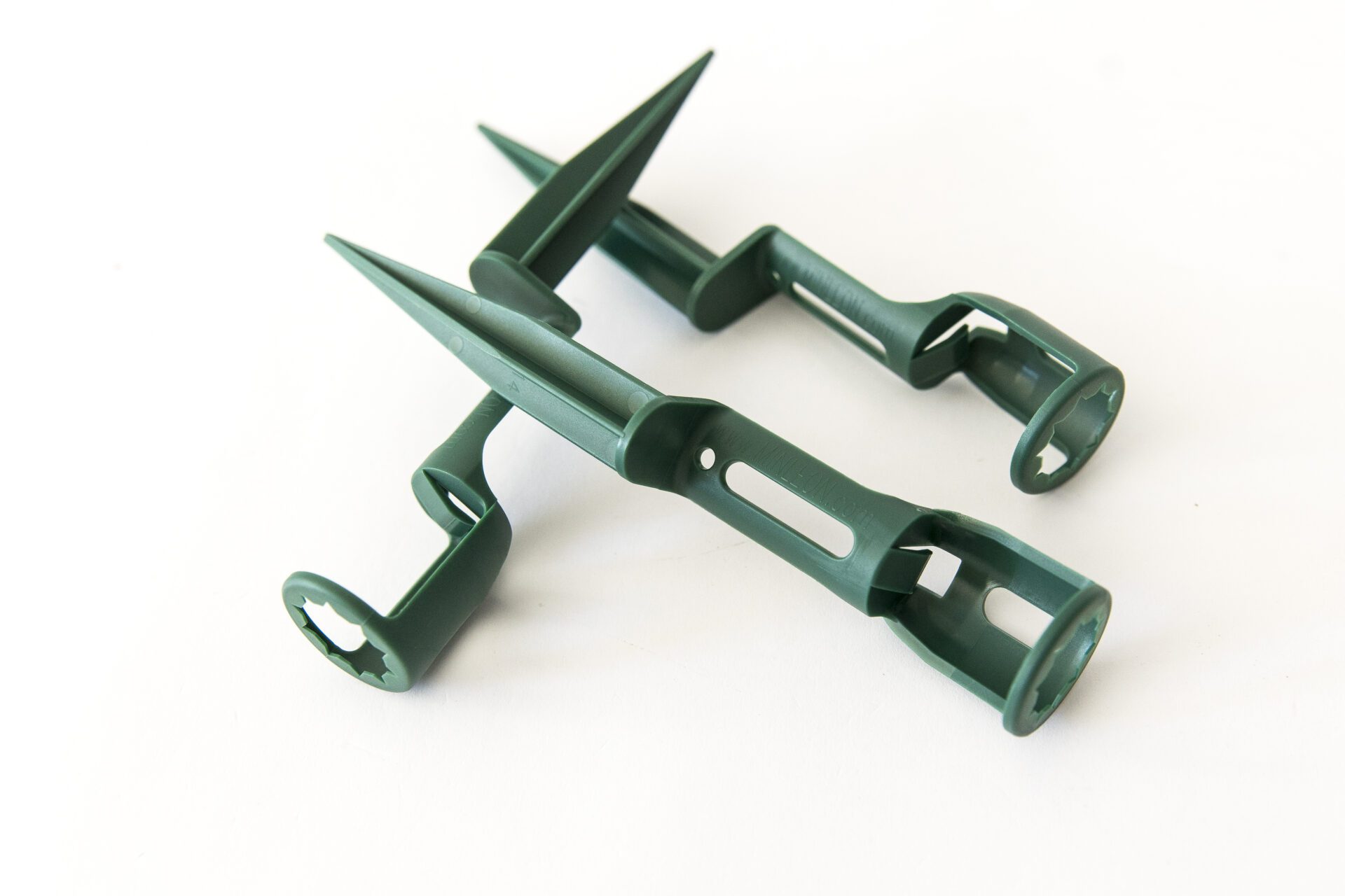 7.5″ Ground stakes with circle socket clip to be used with C9 bulbs (E17 Base). This clip holds C9 bulbs very well and pointing straight up without putting any stress on the socket wire. Can be used to border driveways, sidewalks, flower beds, and other landscaping features.